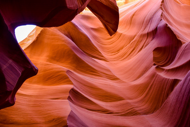Beautiful Antelope Canyon! The barely 500 meters long canyon, which shows the real colors around 11 o’clock, when the sunrays fall on the canyon walls. Unlike other parks, however, this is payable, prepare $55 per person (Lower Antelope Canyon).